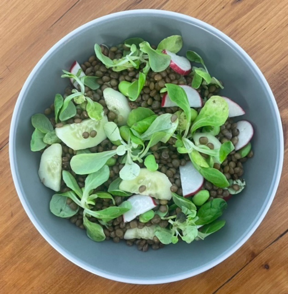 Ensalada de arroz salvaje, pepino, edamame y cilantro.Dale al click para mas ingredientes y aliños
